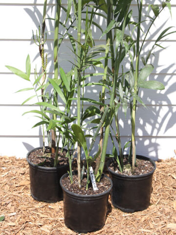The growth rate of Long Stem Bamboo Palms will vary greatly depending on soil type, sunlight, temperature and other factors. A few leaves are often trimmed prior to shipping to reduce transpiration and travel stress.