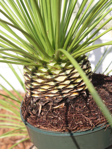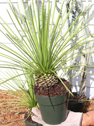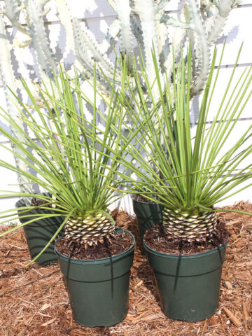 (XL Specimen, 6” Pot) Totally unusual narrow, dark green unarmed, flexible leaves, often numbering in the 100's, cascade from the center of the plant forming a dense rounded rosette of 2 to 3 feet tall by as wide, and look almost like a giant puff ball. Uniquely the coloration of the leaves from deep green by the stalk to tan at the tips gives the rounded shape a radiant glowing appearance. The ability to thrive well in a container indoors or on an urban patio, makes this agave a fantastic plant for any home, office or workshop environment. One of our favorites here in the nursery.