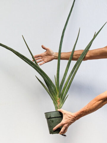Before leaving, Sansevieria are inspected, watered, and pruned. Larger plants, generally those that ship in 8″ pots, will be topped to 36″ or 48″ overall, depending on the variety, if necessary, to facilitate shipping. Your new plants’ pot is then bagged to ensure that the soil stays in the pot and not loose in the box. Plants are tissue or kraft paper wrapped and generally secured in place with natural biodegradable peanuts.